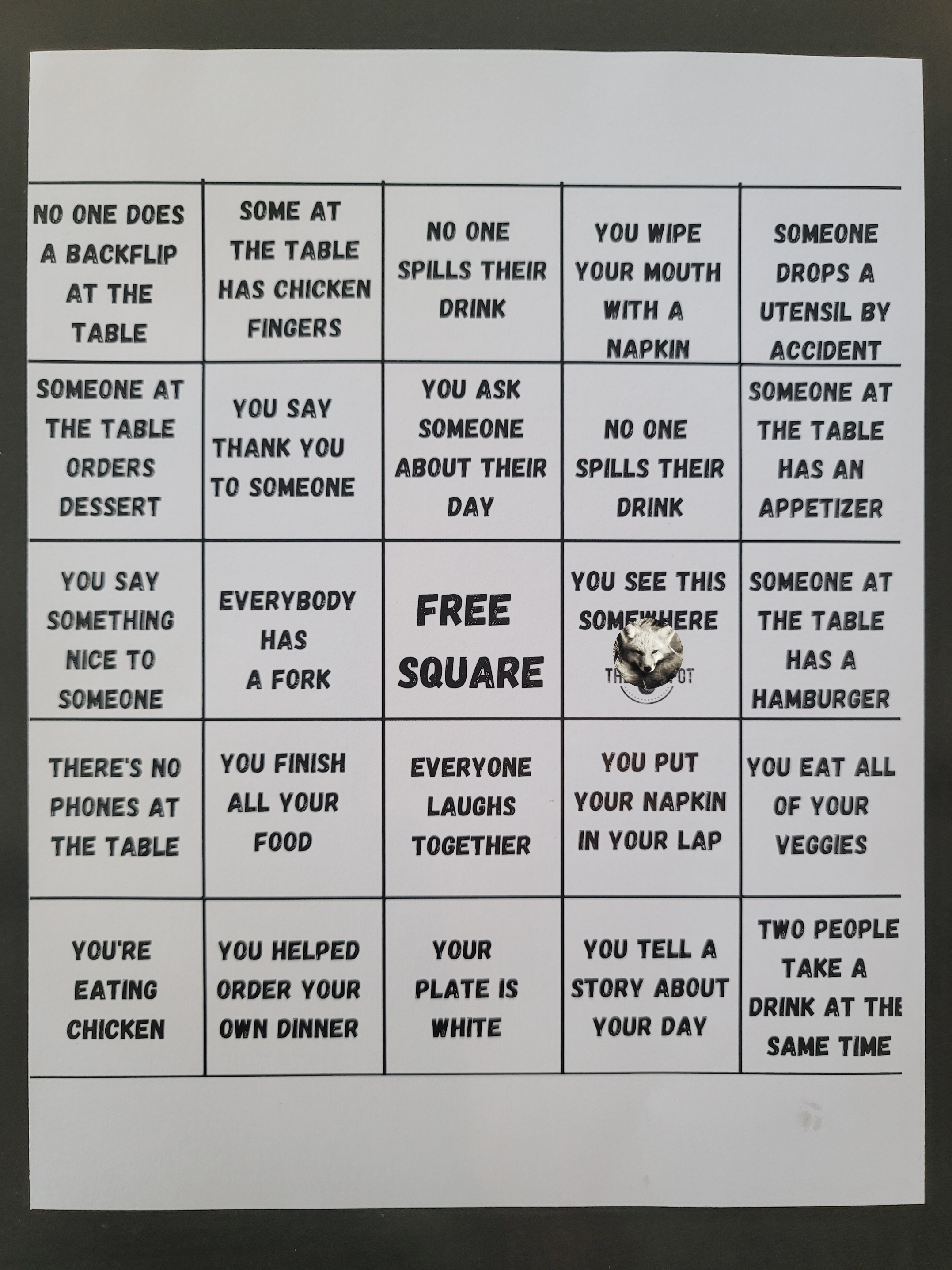 bingo menu idea lifted from a cool resturant
